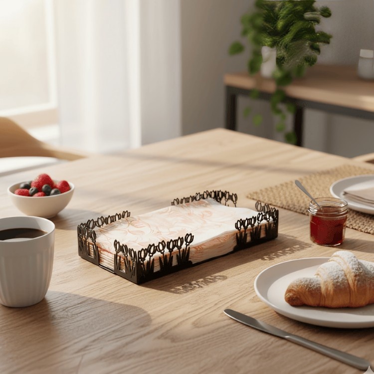 Add some elegance to your kitchen or dining area with this flower paper towel tray design. This paper towel tray is specifically designed to make your life easier, with an impressive flower pattern to accompany its functionality.